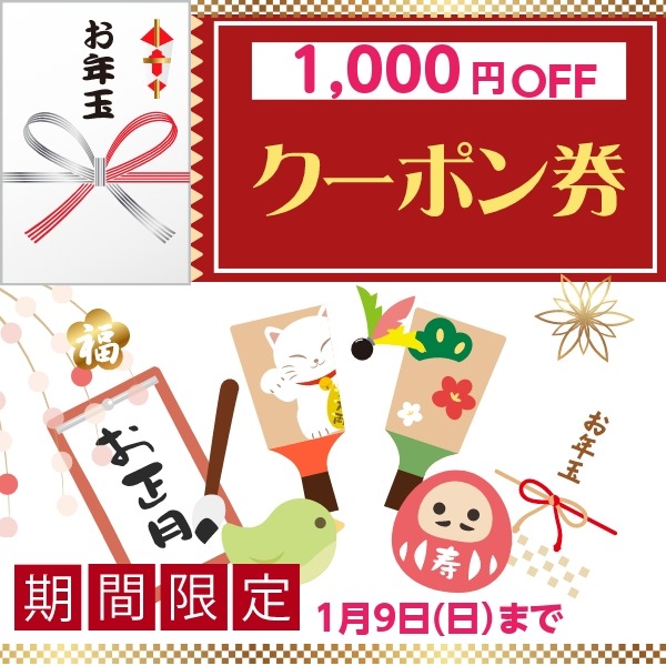 お年玉1,000円クーポンのお届けです。全商品2,500円以上のお買物にご利用いただけます。